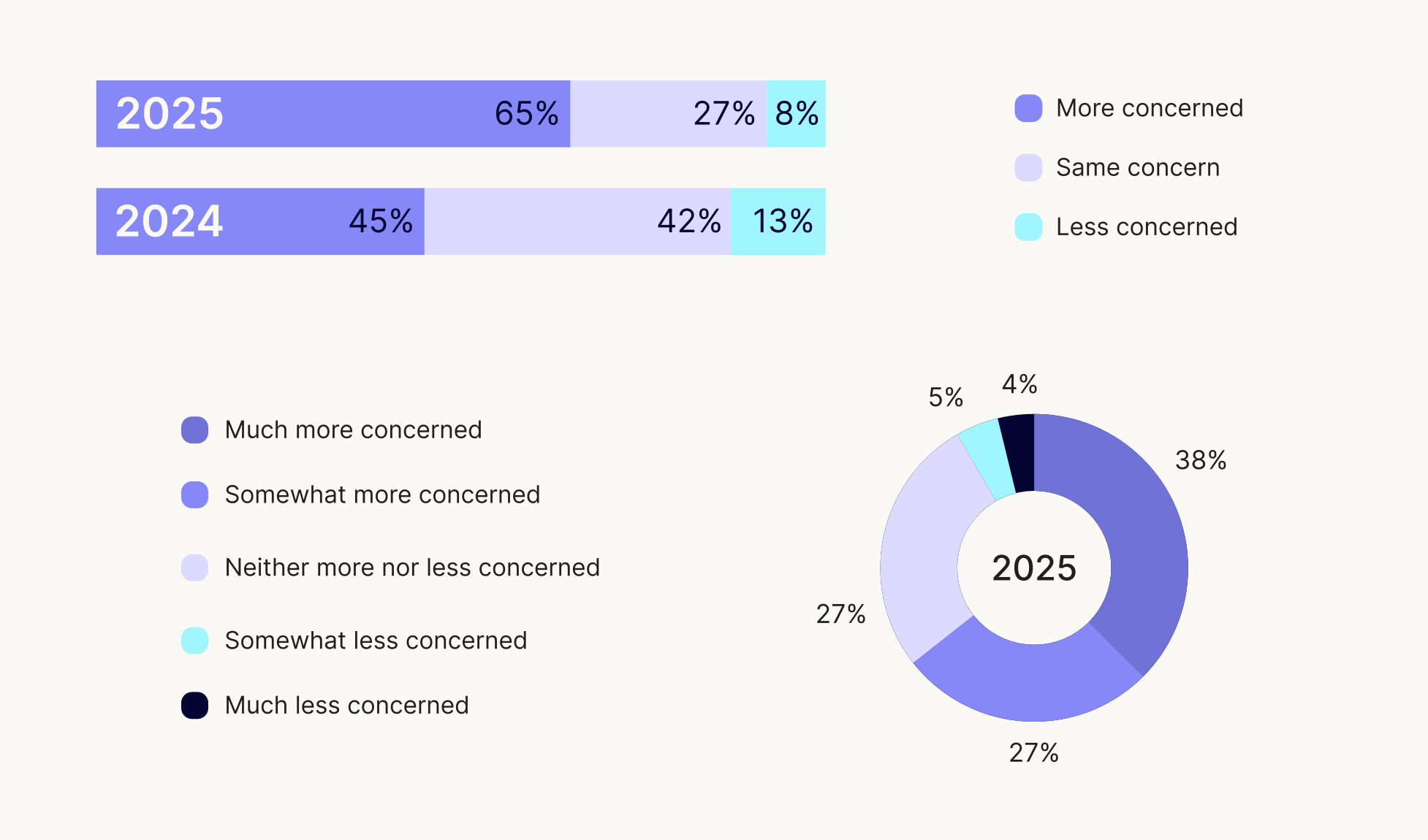 How concerned are you about your data being used to train AI compared to two years ago?