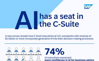 The “AI Has a Seat in the C-Suite” survey, conducted by Wakefield Research and sponsored by SAP, polled 300 C-Level executives at companies with at least $1 billion in annual revenue in the United States. Additional findings included: